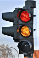 light; so he hit the gas-peddle and ran the red light. The driver of the brown pickup who was ready to turn onto 412, assuming the green light meant “safe to go”, made a jack-rabbit start. The two pickups met in the intersection.